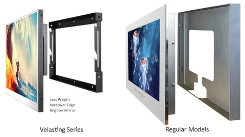 We have optimized the structure of waterproof TV for Velasting series. The construction of back cover gets lighter and smaller, the edges get narrower, the installation back bracket gets simpler, and the assembly of TV gets easier. We also removed the touch buttons on the front panel to save the space and perfect the mirror when turing off the TV. All of these make the cost down, and we reduced the unit price accordingly.