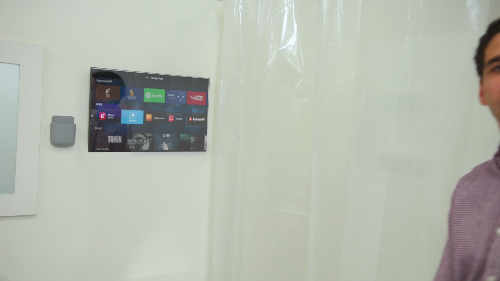 Q: Can you install the bathroom TVs at the end of your bath or within a shower area?