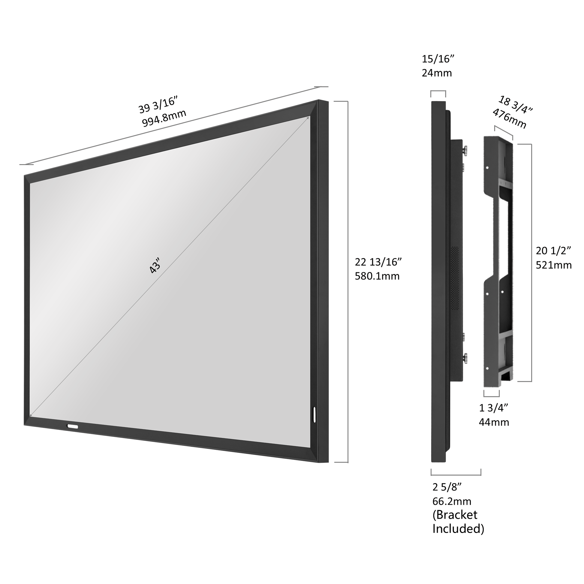 ❏ Display Size: 43″